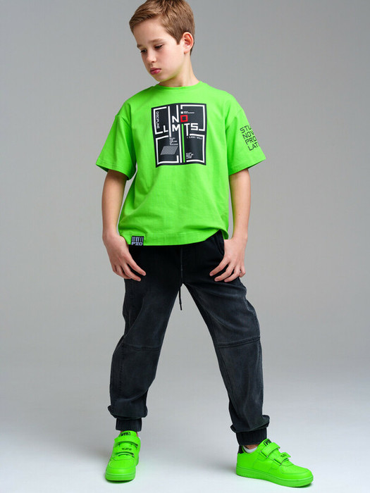 Джинсы из эластичного денима. Посадка JOGGER FIT. Карманы в боковых швах. Эластичный пояс с тесьмой позволяет легко надевать джинсы и утягивать до идеальной посадки в зависимости от комплекции ребенка. Эластичные манжеты.