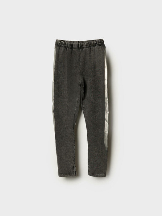 Легинсы для девочки подростка. Модель с высокой посадкой и облегающим силуэтом. Выполнены из хлопкового трикотажа по виду похожего на деним. Пояс выполнен с внутренней резинкой, благодаря чему легинсы хорошо держатся и комфортны в носке. По низу штанин - небольшие боковые разрезы, которые добавляют удобства и стильный акцент. По бокам расположен декоративный принт с серебрянным блеском.