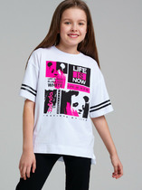 Детская футболка для девочки. Модель прямого кроя, выполнена из эластичного хлопкового трикотажа джерси. Спереди расположен крупный красочный принт. Горловина круглая. Рукава-крылышки.