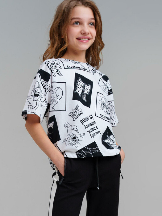 Футболка для девочки подростка. Высокое содержание хлопка. Благодаря наличию эластана в составе ткани изделие держит форму и меньше мнется. Модель выполнена из качественного и приятного на ощупь трикотажа.