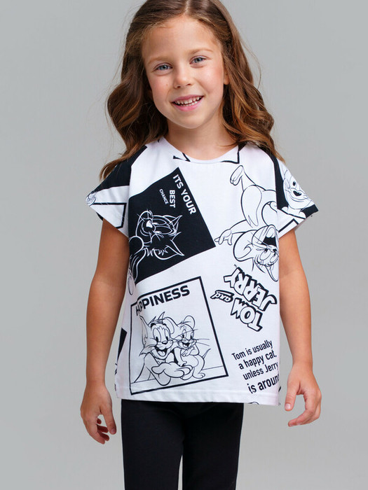 Футболка детская для девочки. Высокое содержание хлопка. Благодаря наличию эластана в составе ткани изделие держит форму и меньше мнется. Модель выполнена из качественного и приятного на ощупь трикотажа.