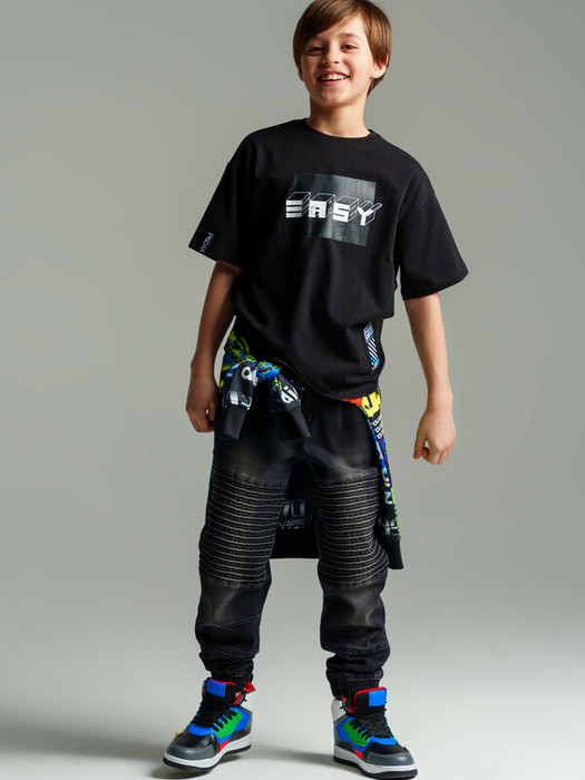 Футболка из качественного и приятного на ощупь трикотажа джерси. Высокое содержание хлопка 95%. Благодаря наличию эластана в составе ткани изделие проще в уходе и держит форму. Oversize fit.