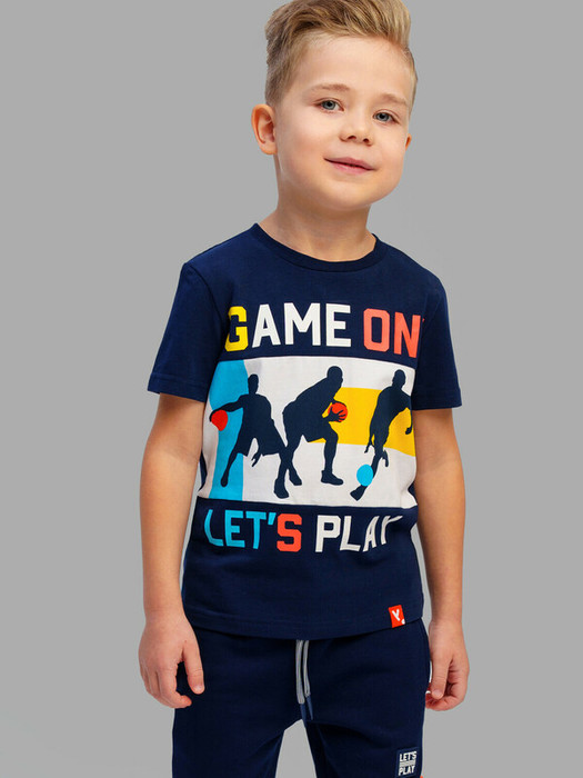 Футболка детская для мальчика. Футболка из качественного и приятного на ощупь трикотажа джерси с высоким содержанием хлопка 95%. Благодаря наличию эластана в составе ткани изделие проще в уходе и держит форму. Модель выполнена из качественного и приятного на ощупь трикотажа.