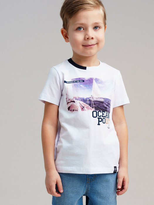 Футболка детская для мальчика. Футболка из качественного и приятного на ощупь трикотажа джерси. Модель с высоким содержанием хлопка 95%. Благодаря наличию эластана в составе ткани изделие проще в уходе и держит форму. Модель выполнена из качественного и приятного на ощупь трикотажа.