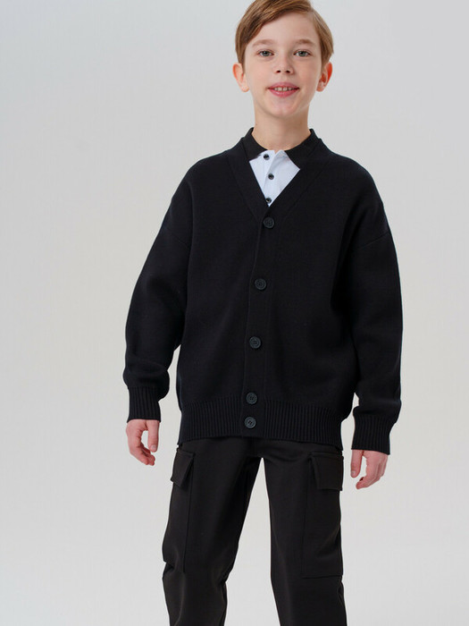 Стильный школьный черный кардиган на пуговицах для мальчика-подростка.