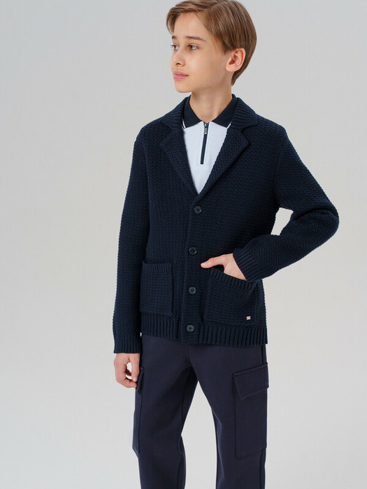 Стильный школьный темно-синий кардиган на пуговицах для мальчика-подростка.