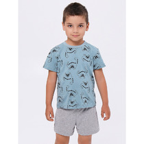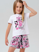 Детский комплект для девочки. Состоит из футболки с коротким рукавом и юбки. Выполнен из мягкого хлопкового трикотажа. Футболка с принтом милого щенка из "101 далматинца". Рукава футболки украшены оборками из сетки. Юбка с воланами, из легкого трикотажа имеет эластичный пояс с бантиком.
