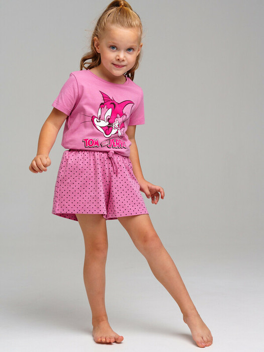 Пижама: футболка, шорты с высоким содержанием хлопка. Благодаря наличию эластана в составе ткани, изделие проще в уходе и держит форму. Шорты свободного кроя. Эластичный пояс с тесьмой позволяет легко надевать шорты и утягивать до комфортной посадки.
