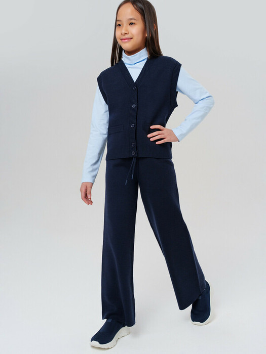 Этот элегантный костюм в темно-синем цвете отлично подойдет для школьницы и станет универсальным вариантом в школу или для повседневной носки.