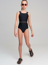 Слитный купальник для девочки подростка. Модель выполнена в модном дизайне с фигурными вырезами по бокам и глубоким овальным вырезом на спинке. Бретели украшены жаккардовой тесьмой с надписями. Купальник пошит из эластичного мятного трикотажа с белой подкладкой. Внутри — съёмные чашки и гигиеническая вставка. Все срезы обработаны мягкой эластичной лентой для комфортной посадки. Благодаря UF-защите, ткань сохраняет первоначальный вид даже при длительном пребывании на солнце. Подходит для плавания и активного отдыха.