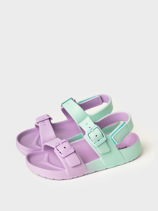 Пляжные сандалии из облегченного ЭВА с регулируемой союзкой двумя ремешками. Фиксация пятки ремешком на липучке. Модель имеет градиентную окрашивание. Материал хорошо моется. Удобная колодка.