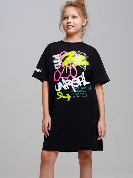 Платье для девочки подростка. Оверсайз платье-футболка из качественного и приятного на ощупь трикотажа джерси. Высокое содержание хлопка 95%. Благодаря наличию эластана в составе ткани изделие проще в уходе и держит форму. Модель выполнена из качественного и приятного на ощупь трикотажа.