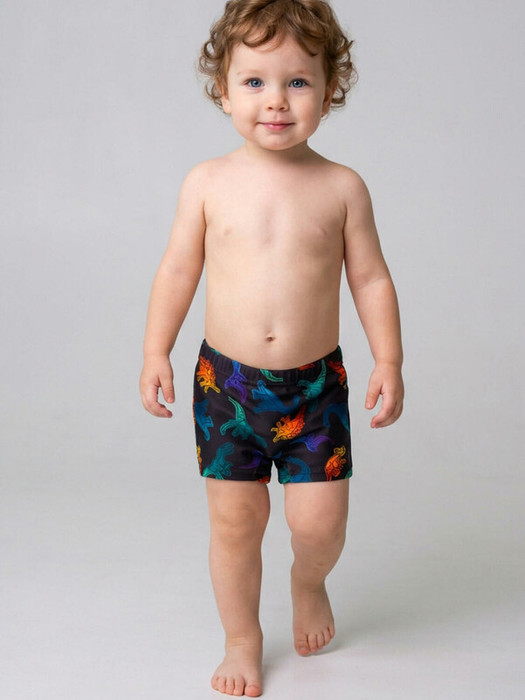 Плавки-шорты детские средней длины, прилегающего силуэта для мальчика. Изготовлены из эластичного трикотажа, с подкладкой для большего комфорта. Ткань устойчива к солнцу и солёной воде, благодаря UF-защите сохраняет насыщенность цвета и структуру волокон. В поясе — удобная резинка и регулируемый шнурок.