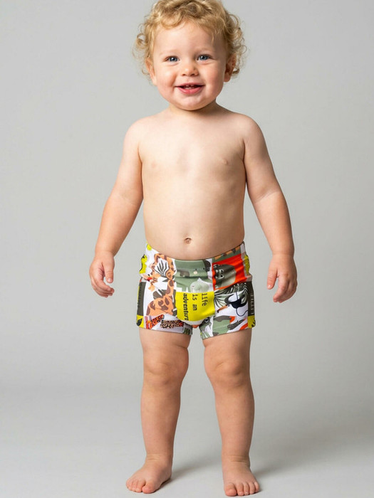 Плавки-шорты детские средней длины, прилегающего силуэта для мальчика. Изготовлены из эластичного трикотажа, с подкладкой для большего комфорта. Ткань устойчива к солнцу и солёной воде, благодаря UF-защите сохраняет насыщенность цвета и структуру волокон. В поясе — удобная резинка и регулируемый шнурок.