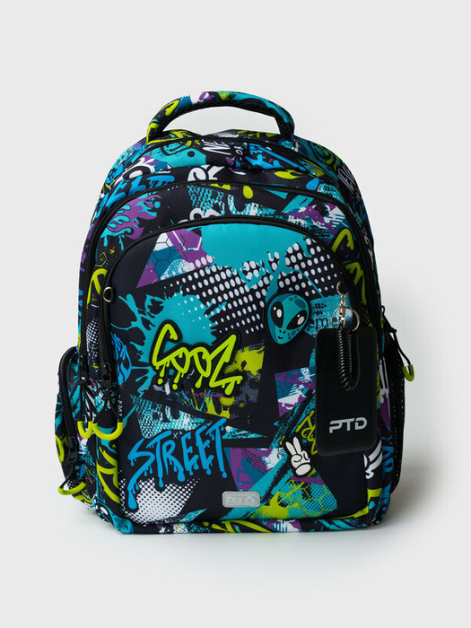 Трехсекционный рюкзак с ортопедической спинкой для мальчика школьника. Конструкция ортопедической вентилируемой спинки обеспечивает максимальный комфорт и позволяет снизить нагрузку на спину школьников и дошкольников. Широкие мягкие  вентилируемые лямки регулируются по высоте, что делает рюкзак идеальным как для первоклассника, так и для детей из средней школы. Спереди лямки можно закрепить на застежку, чтобы они не спадали. Дно имеет уплотнительный вкладыш, который при необходимости можно не использовать. Снизу дна имеются резиновые "ножки", чтобы низ рюкзака не пачкался. Рюкзак имеет два основных отделения на молнии один большой карман спереди. Внутри имеется несколько отделений и кармашков для систематизации школьных принадлежностей. По бокам есть карманы: один - сетчатый, второй - на молнии.  У рюкзака есть две ручки: одна - мягкая вентилируемая ручка для ношения в руках, вторая маленькая - для того, чтобы рюкзак можно было вешать на вешалку. Модель выполнена из водонепроницаемой ткани. Ранец имеет светоотражающие детали на лямках, по бокам, на переднем отделении, чтобы ребенка было хорошо видно в темноте со всех сторон. В подарок идет пластиковый чехол для пропуска на растягивающейся пружине. Пружина дает возможность спокойно приложить пропуск к турникету не снимая рюкзак. Рюкзак в школу можно дополнить мешком для обуви и пеналом в том же дизайне. Размер рюкзака: 29*38*19 см. Вес рюкзака: 630 гр