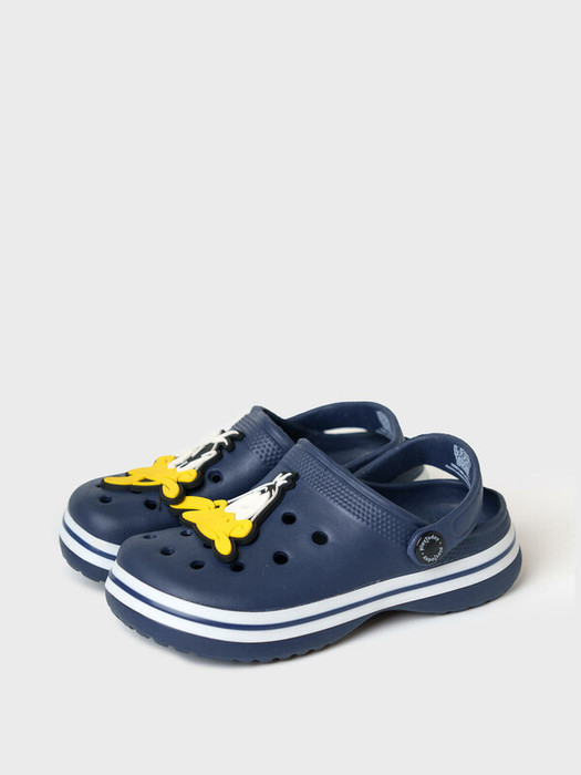 Сабо для мальчика из облегченного и прочного ЭВА. Материал хорошо моется.  Форма модели учитывает эргономику стопы.  Модель имеет перекидной ремешок фиксации ноги. Модель декорирована патчами  - смешной герой WARNER BROTHERS (Уорнер Бразерс) утка Даффи Дак.