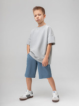 Шорты из качественного футера с имитацией денима. Эластичный пояс со шнурком. Функциональные боковые карманы.