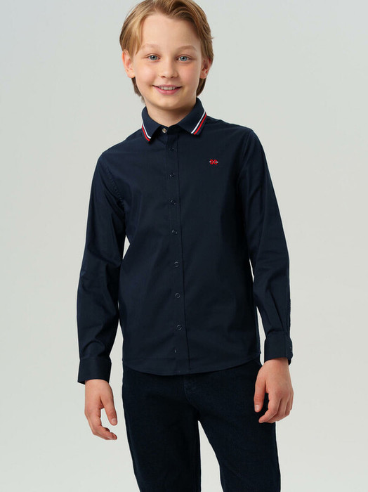 Эта рубашка с длинным рукавом застёгивается на классические кнопки, а воротник держит форму даже после многократных стирок. Темно-синий цвет делает её универсальной — её можно надеть и с жилетом, и под школьный пиджак из коллекции PlayToday, а также дополнить галстуком или бабочкой. Это не просто школьная рубашка — это база, с которой начинается любой продуманный образ.