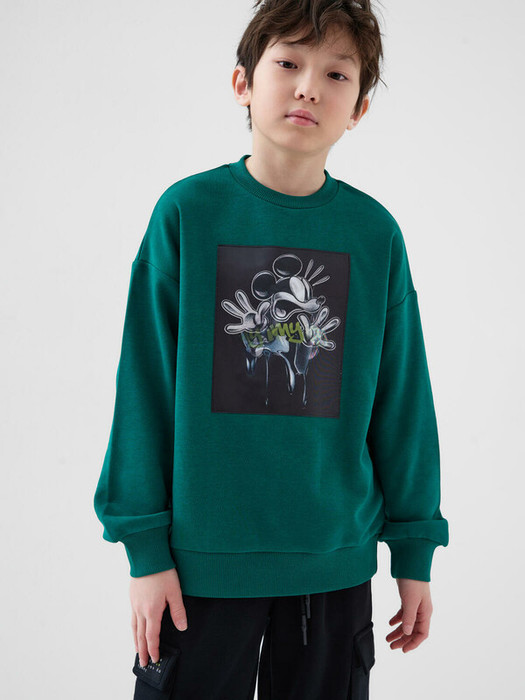 Свитшот оверсайз для мальчика подростка. Выполнен из хлопкового футера без начеса. На груди — принт с любимым мультяшным героем Микки Маусом. Манжеты и низ изделия выполнены из эластичного риба, что обеспечивает комфортную посадку.