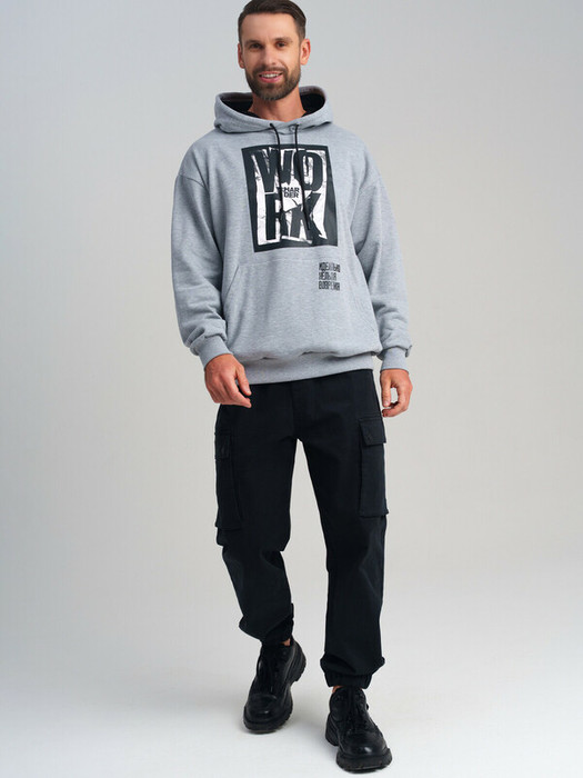 Худи мужское. Толстовка с высоким содержанием хлопка. Капюшон регулируется шнурком. Трикотажные манжеты. Карман-кенгуру.
