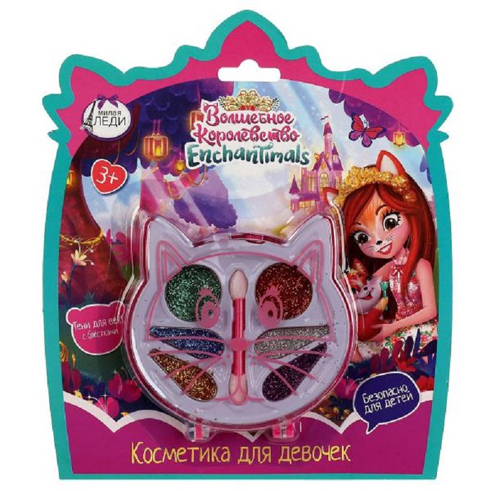 Набор косметики для девочек «Enchantimals» ТМ «Милая леди» - тени для век с блёстками 6-ти цветов- двусторонний аппликатор для нанесения макияжа- складной футляр в виде кошечки- безопасно для детей
