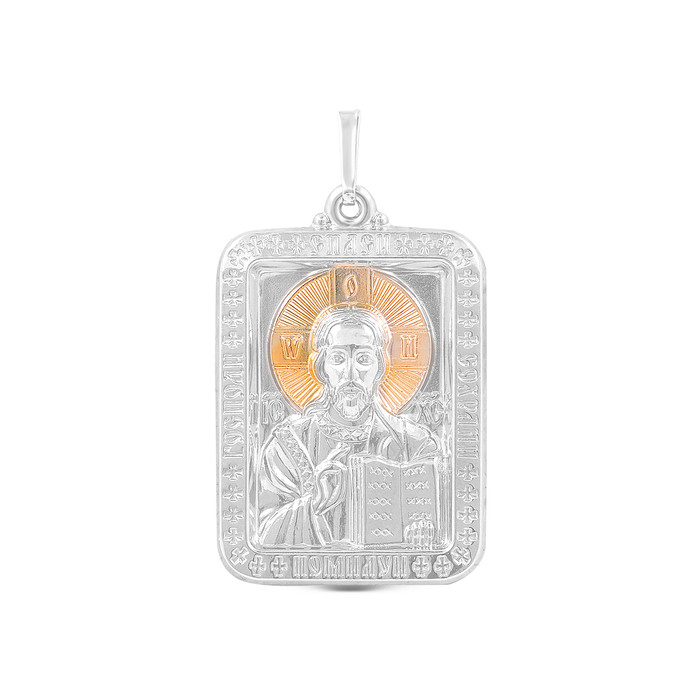 Подвеска-икона из родированного серебра с золочением - Спаситель 925 пробы п010р