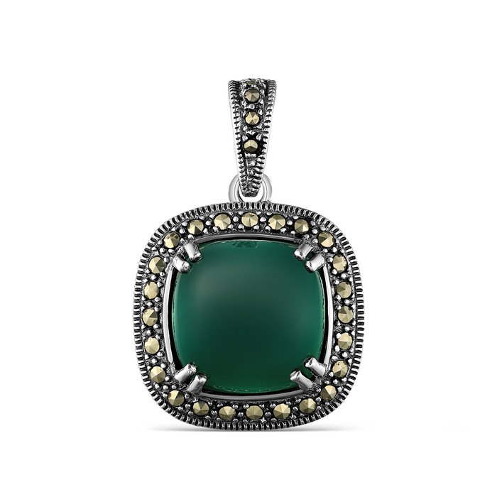 Совместные покупки Симферополь Ювелирные украшения и бижутерия Подвески — Подвеска из чернёного серебра с нат. агатом и марказитами 925 пробы MN00675G-AG-