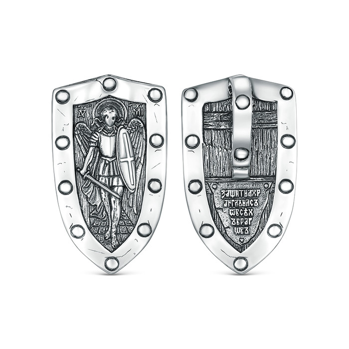 Подвеска из чернёного серебра - Щит, Архангел Михаил п-011ч