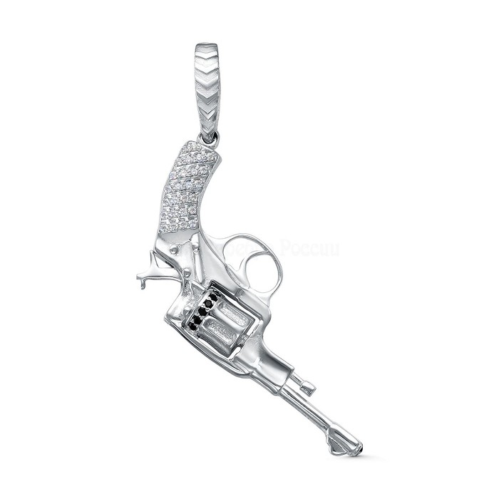 Подвеска из серебра с фианитами родированная - Револьвер, пистолет