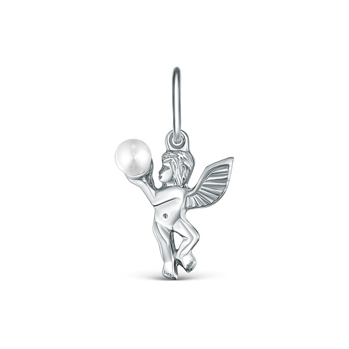 Подвеска из серебра с жемчугом родированная Ангел 925 пробы 3-211р