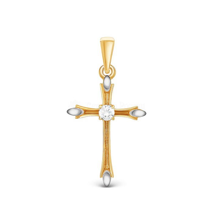 Подвеска из золочёного серебра с фианитом и родированием