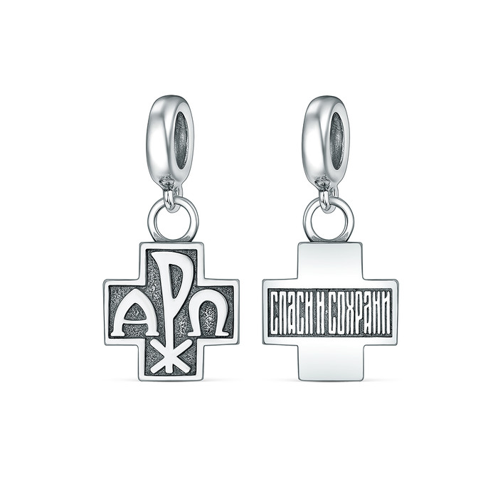 Подвеска-шарм религиозная из чернёного серебра - Хризма, Спаси и сохрани П-2557о