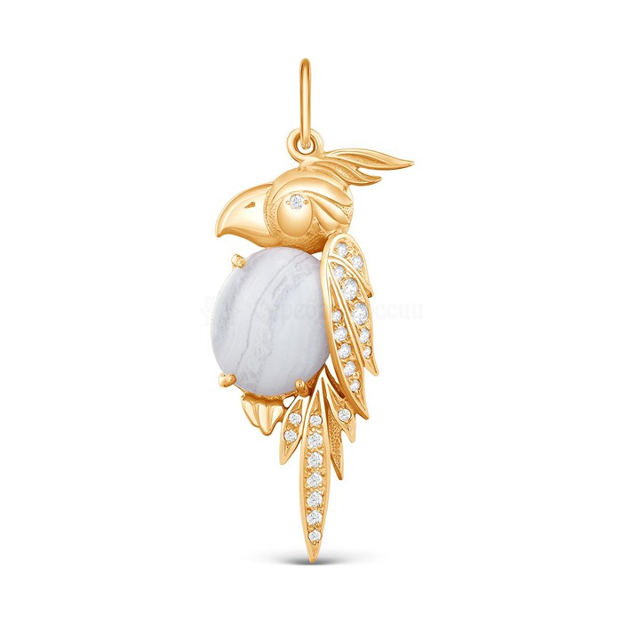 Подвеска женска из золочёного серебра с фианитами - Попугай