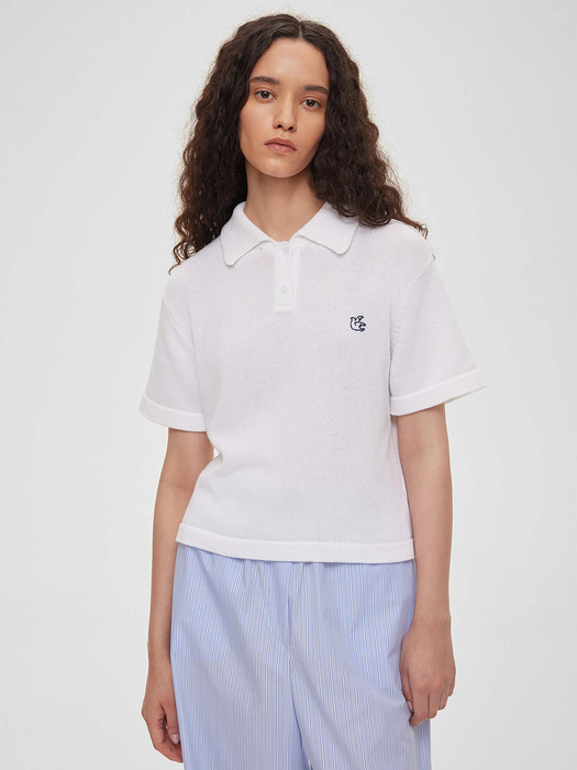 Совместные покупки Симферополь Женская одежда Джемперы, свитеры, водолазки — Поло с коротким рукавом из хлопка с вышивкой, белый