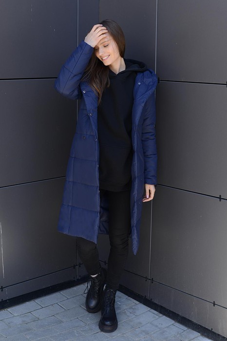 Современное двубортное пальто на кнопках,в верхней части пальто они видовые брендированные,а в нижней потайные.Карманы расположены в рельефах переда.Уютный шалевый капюшон завершает образ. С помощью такого пуховика не получится привлечь внимание, но зато он может стать просто надежной базой. Длина по спинке -102см ,Длина рукава -ок.64см. . Рост 170 Р-ры: 42-52 Состав: полиэстер 100%, подкладка - полиэстер 100%, утеплитель: Air Twin Light 100 г/m2 Цвет: синий Цвет одежды на фотографиях может незначительно отличаться от оригинального.
