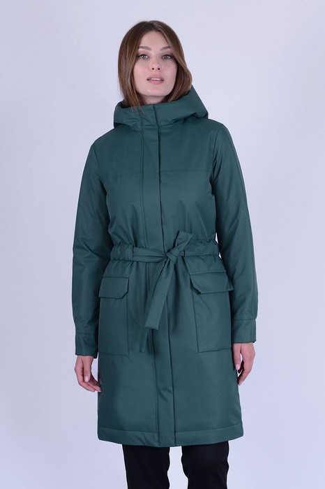 Стильное полупальто из нового вида ткани с шерохватой поверхностью отлично защитит вас от прохладной погоды. Полупальто прямого силуэта с завязывающимся поясом,накладными карманами с клапанами на потайных кнопках. Изделие с витой молнией и притачной планкой,с уютным капюшоном что очень важно в дождливую или ветренную погоду. Длина по спинке - ок.89,длина рукава - ок. 63см с учетом манжета. Рост 170 см. Р-ры 42-52 Состав: полиэстер 100%, утеплитель: Air Twin Light 100 г/m 2 Цвет:зеленый Цвет одежды может незначительно отличаться от оригинала.