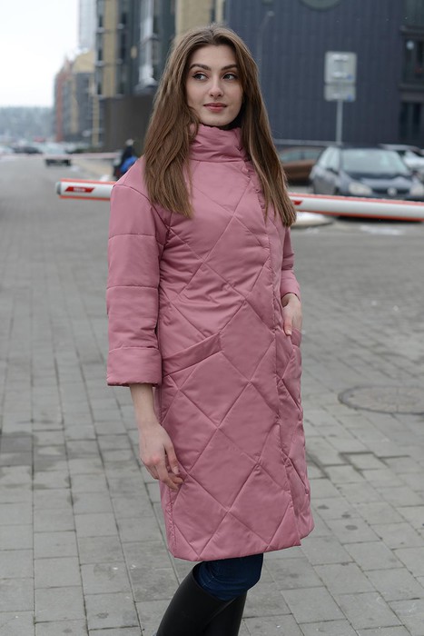 Ультрамодное демисезонное пальто с крупной ромбовидной стежкой по полочке и горизонтальной стежкой по спинке. Воротник стойка создают современный лаконичный дизайн, модель дополнена поясом, что сделает вашу весну теплой и комфортной. Рукав 7/8 с отложной манжетой,со спущенным плечом. Центральная застежка на потайные кнопки. Карманы - листочки . Длина пальто по спинке ок.95см. Длина рукава от горловины ок.60см. Рост 170 см Состав: полиэстер - 100%, утеплитель: Air Twin Light 100 г/m2 Р-ры 42-52 Цвет: ягодный Цвет одежды может незначительно отличаться от оригинала.