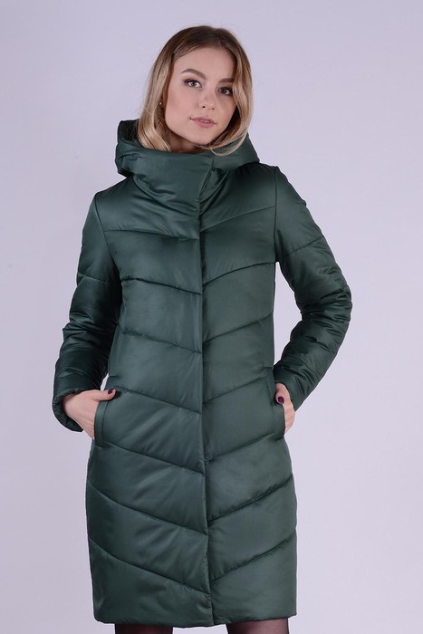 Универсальное полупальто выполнено из нового вида ткани с шероховатой поверхностью и приятным блеском.Полупальто прямого силуэта с аккуратным капюшоном и оригинальной косой стежкой по переду. Изделие с центральной планкой и застежкой на молнию и потайные кнопки,карманы листочки. Рукава втачные. Длина пальто по спинке ок.93см. Длина рукава ок.65 см. Рост 170 см Состав: полиэстер - 100%, утеплитель: Air Twin Light 100 г/m 2 Р-ры 42-52 Цвет: зеленый Цвет одежды может незначительно отличаться от оригинала.