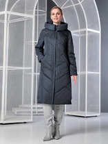310 BLACK/WHITE Пальто зимнее стеганое женское (200 гр. холлофайбер, натуральная
