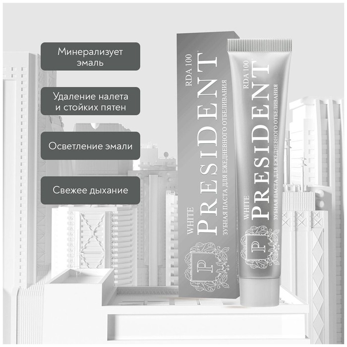 Зубная паста PRESIDENT White 75мл (RDA 100)