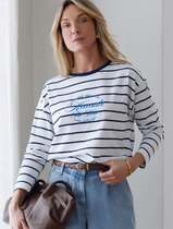 Лонгслив в полоску с принтом из премиального хлопка с эластаном