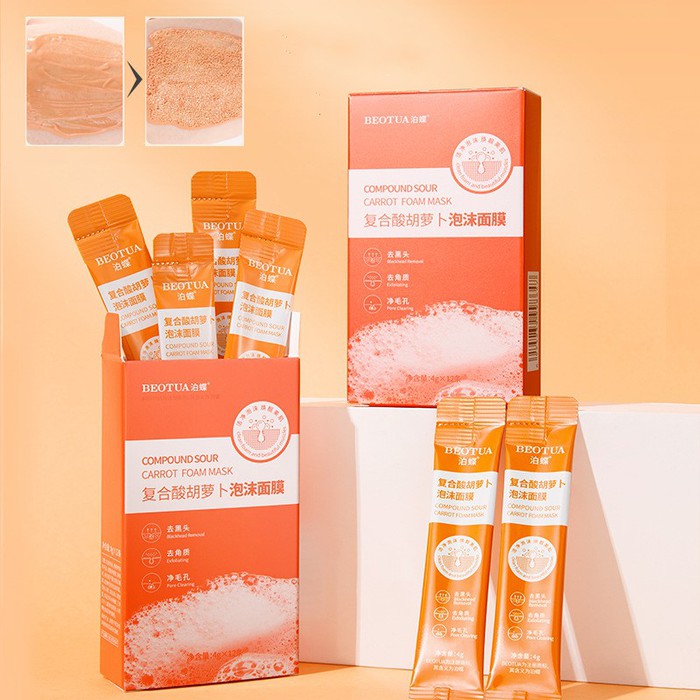 Совместные покупки Симферополь Косметика и парфюмерия Прочий макияж — Пузырьковая маска для лица с экстрактом МОРКОВИ Beotua, НАБОР 12 ШТ. по 4 мл.