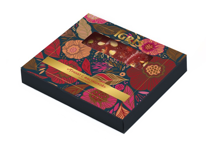 Нежнейший рахат-лукум со вкусом спелого граната и отборными жареными фисташками.