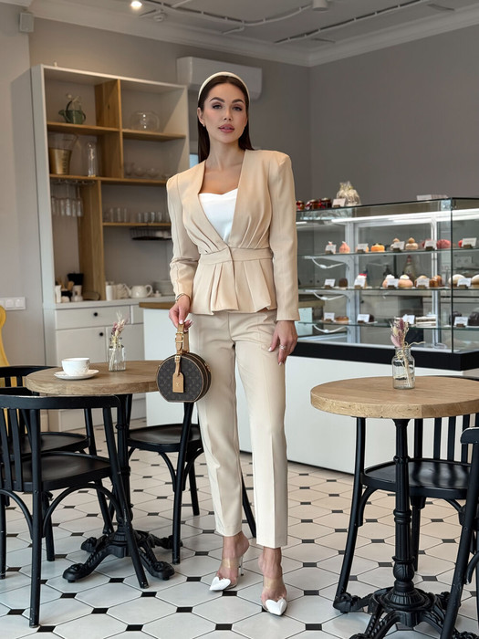 Брюки прямого кроя, длинна 7/8, застёжка- гульфик , по боковым швам обработаны карманы