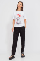 Широкие брюк-палаццо со шлевками-складками. Детали: брюки на притачном поясе, застежка на молнию и брючный крючок, боковые карманы. Задние части брюк с вытачками и имитацией кармана.