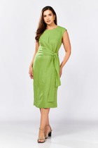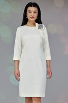 Платье женское, полуприлегающего силуэта, выполнено из 2х видов ткани: из блузочного атласа и основной плательной с легким стрейчем. Перед отрезной по линии талии с нагрудными и талиевыми вытачками. Карманы функциональные от подреза с отрезными бочками. Отлетные детали верхней части лифа от кокетки заутюжены в низ. Спинка со шлицей в среднем шве и талиевыми вытачками. Рукав втачной одношовный с резинкой и сборкой по низу. В левом боковом шве тесьма-молния, потайная.