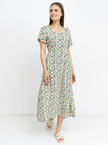 Стильное женское платье полуприлегающего силуэта, выполнено из эластичной джинсовой ткани. По переду кокетки с отлетным краем, рельефы, переходящие в линию кармана с листочкой, накладные карманы. Застежка центральная с отрезной планкой на петли и пробивные болты. Спинка со средним швом и талиевыми вытачками. Рукава втачные, одношовные с отрезными манжетами и разрезом по середине. Воротник отложной рубашечного типа. По боковым швам платья и среднему шву спинки настрочные шлевки для пояса, который выполнен из основной ткани. Платье без подкладки.