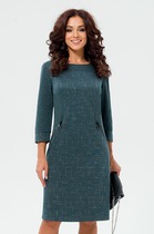 Роскошное платье полуприлегающего силуэта из трикотажного полотна бирюзового цвета. V-образный вырез обработан внутренней обтачкой. Перед изделия дополнен встречными складками. Втачные рукава дополнены сборкой и обработаны окантовкой. В комплект входит пояс с металлической пряжкой. Длина изделия по спинке от плечевого шва до низа изделия — см. Рост фотомодели — 170 см.