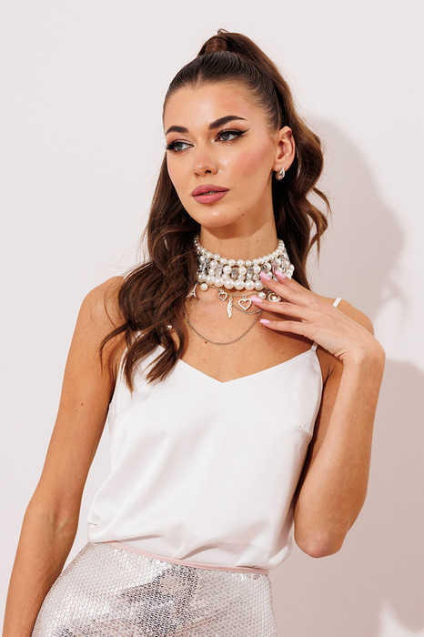 Атласная блузка (топ) на регулируемых бретелях. Прямого силуэта. Вверху на широкой обтачке. Полочка с нагрудной  вытачкой.