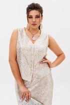 Жилет льняной полуприлегающего силуэта без рукавов. Полочка с центральной застежкой на завязки и крючок, с 2-мя вертикальными вытачками от низа для лучшего прилегания изделия. Спинка с вертикальной вытачкой от низа и центральным швом. Жилет на подкладке из хлопка.